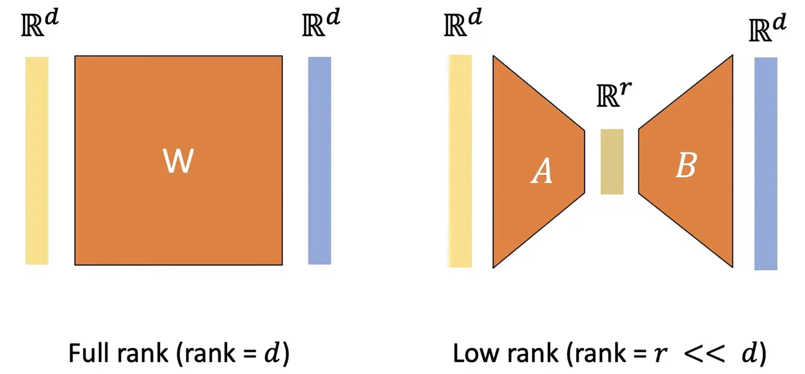它的变化 \(\Delta W\)(更新量)其实可以用一个更小、更低秩的矩阵来逼近。