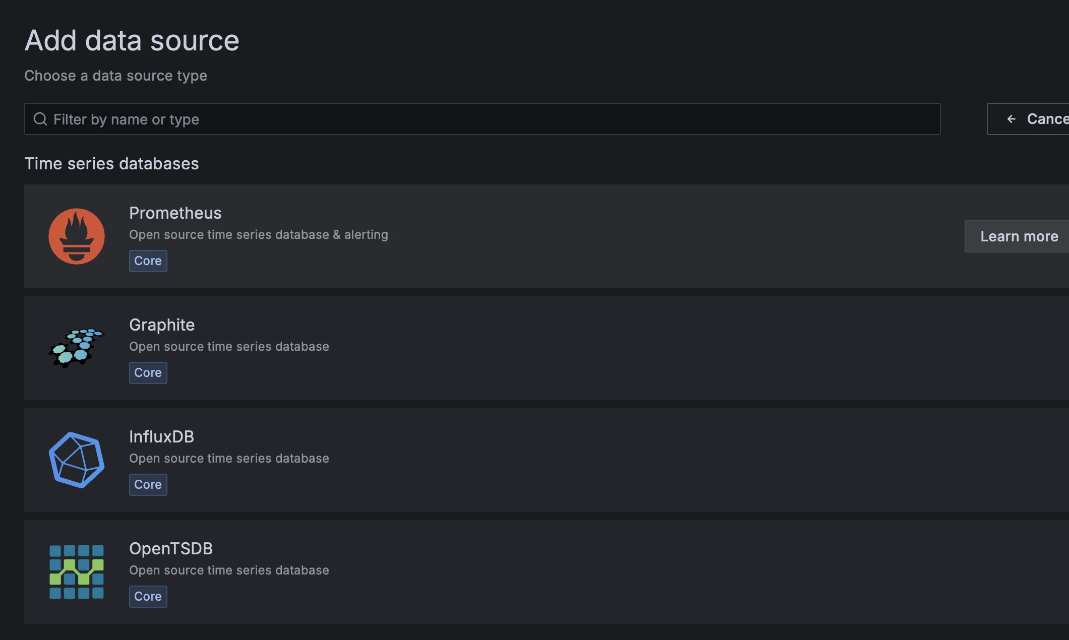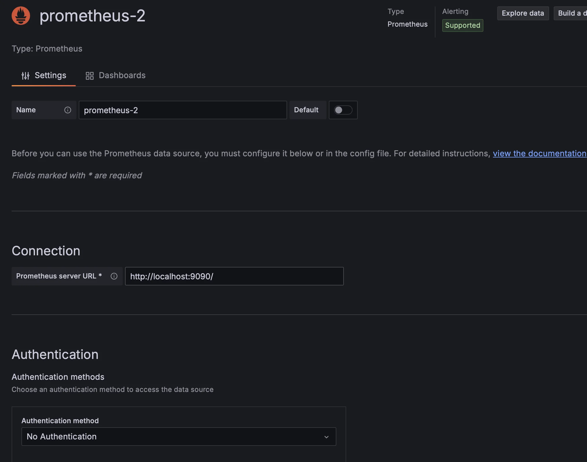 - 在“指标”选项卡下,选择您的 Prometheus 数据源(右下角