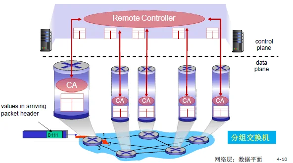 - 将路由器、交换机和目前大多数网络设备的功能进一步抽象成:按照流表(由控制平面设置的控制逻辑)进行 PDU(帧、分组)的动作(包括转发、丢弃、拷贝、泛洪、阻塞)