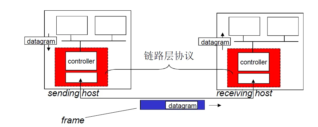 链路层:一个节点把帧通过链路传送到另外一个节点