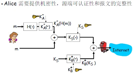 可认证性和报文完整性:传报文和数字签名(用对称式密钥加密
