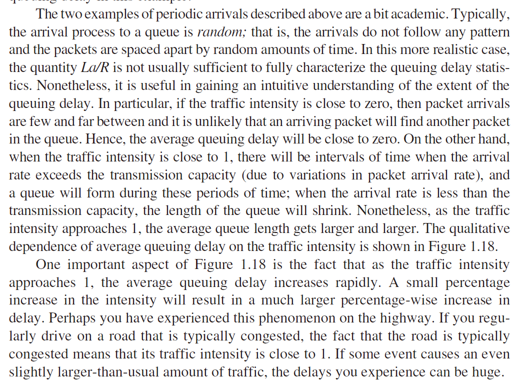 证明:在这些假设前提下,流量强度 =1 时候,排队延迟无限大