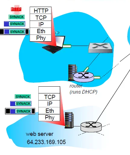 以一个 web 页面请求的例子 : 学生在校园启动一台笔记本电脑:请求和接受 www.google.com