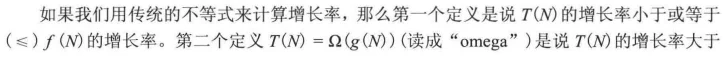 定义 2.5: 若存在 c>0 和 n0,当 N>n0 时,T(N)>cq(N),则记为 T(N) = w(q(N))