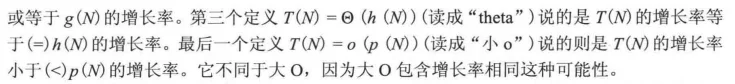 ** 定义 2.3: ** \(T(N)=\Theta(h(N))\) 当且仅当 \(T(N)=O(h(N))\) 且 \(T(N)=\Omega(h(N))\) 。