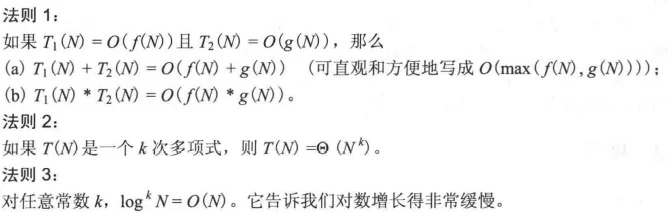 定义 2.1: 如果存在正常数 \(c\) 和 \(m_{0}\) 使得当 \(N \geqslant m_{0}\) 时 \(T(N) \leqslant c f(N)\), 则记为 \(T(N)=O f(N)\) 。