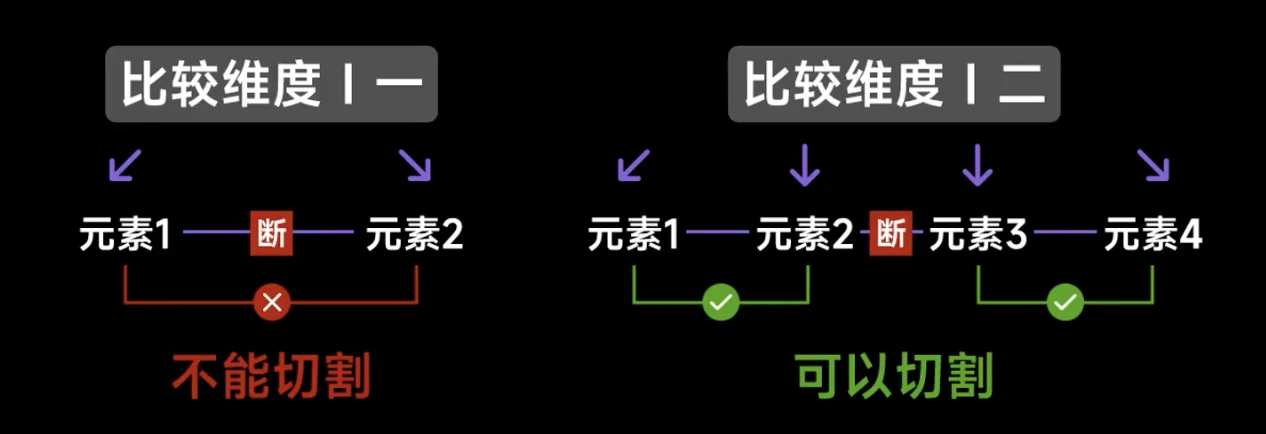 但是需要注意不是每一个比较维度切分出来都是可以的。不能切割只有两个项目