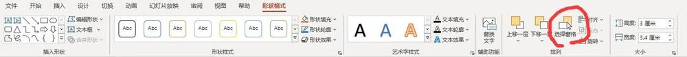 - 顶部菜单栏 - 形状格式 - 选择窗格