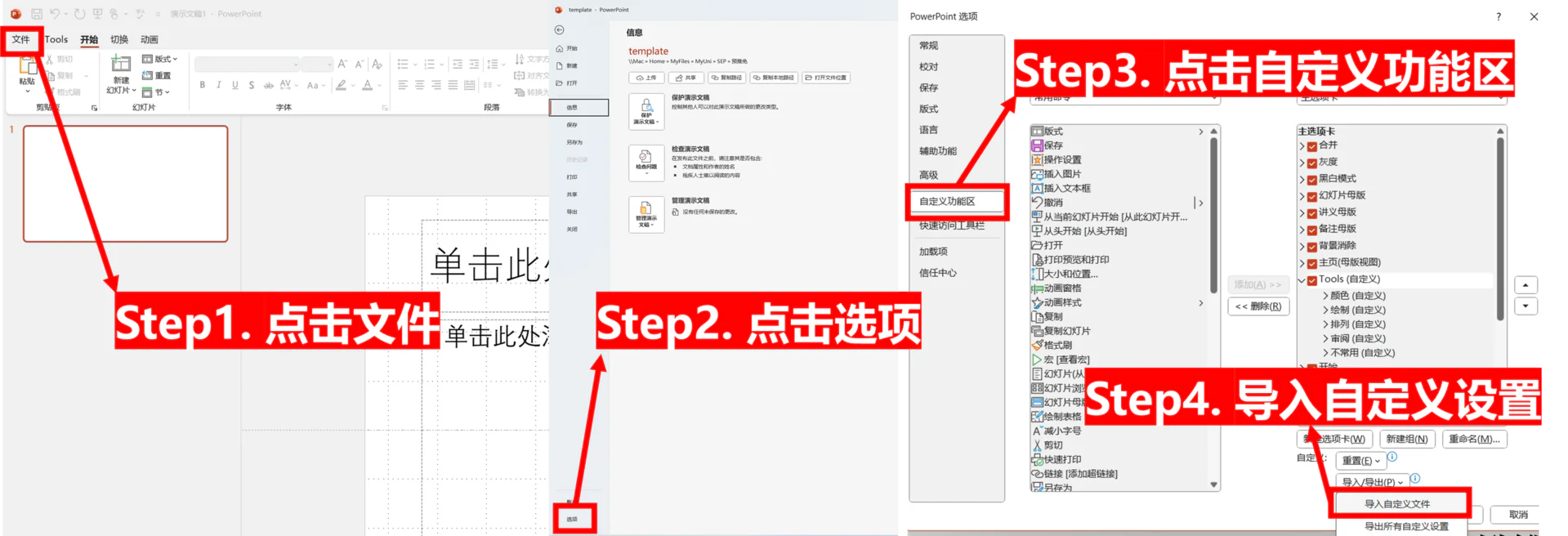 我发现了 PowerPoint 是支持自定义工作区的,可以增删改图标和工具,甚至可以自定义一些宏来使用