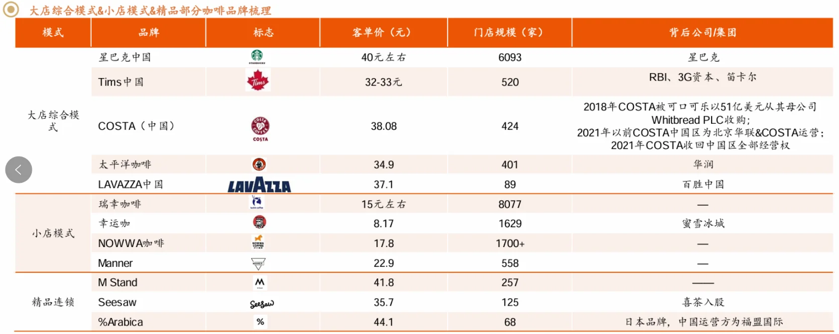 | 第二次浪潮 | 大店综合咖啡 | 星巴克 Costa | 星巴克“第三空间” |