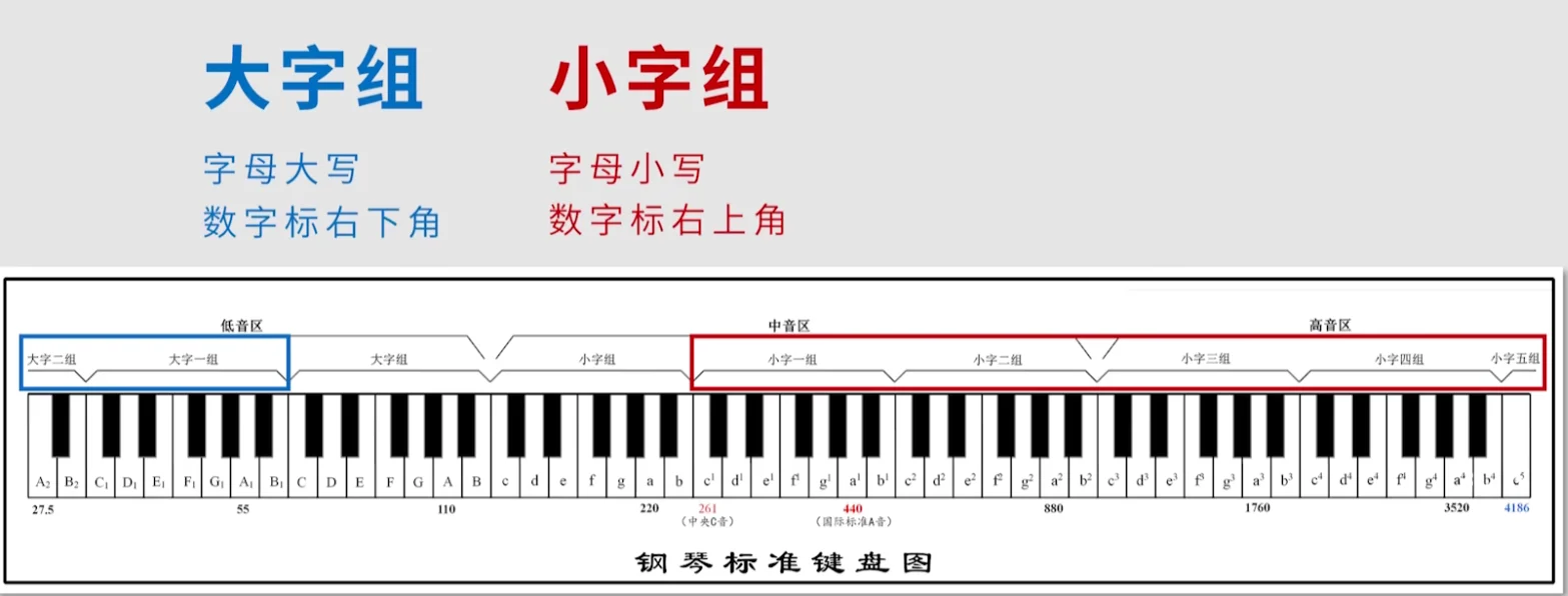 钢琴: 中央 c 是 \(c_1\) 编曲:中央c是\(c_3\)