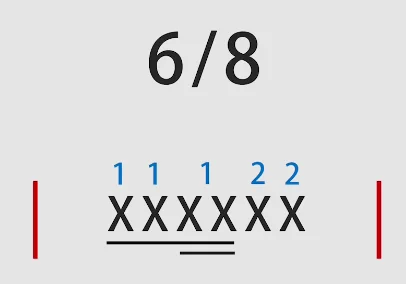 强弱关系 - 两拍:强弱 强弱 - 三拍:强弱弱 - 四拍:强弱次强弱 强弱次强弱
