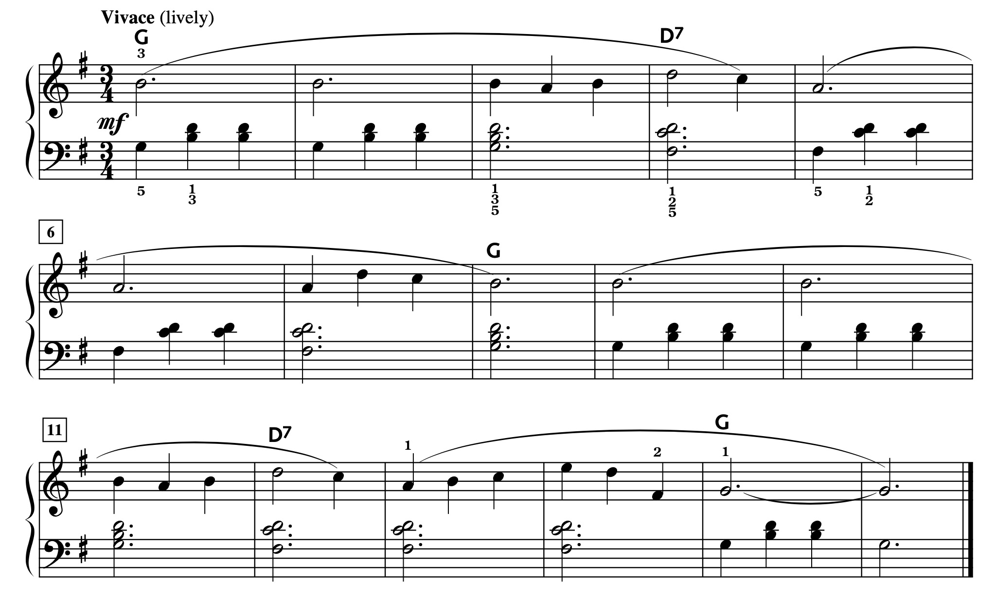 (3) 认识基础和弦 , 主要是三和弦 ( 大三 , 小三 ) 和简单七和弦 ( 大小七 , 大大七 , 小小七 ) 和他们的标记 , 对它们的音响效果有初步的感受 , 开启和声新领域.
