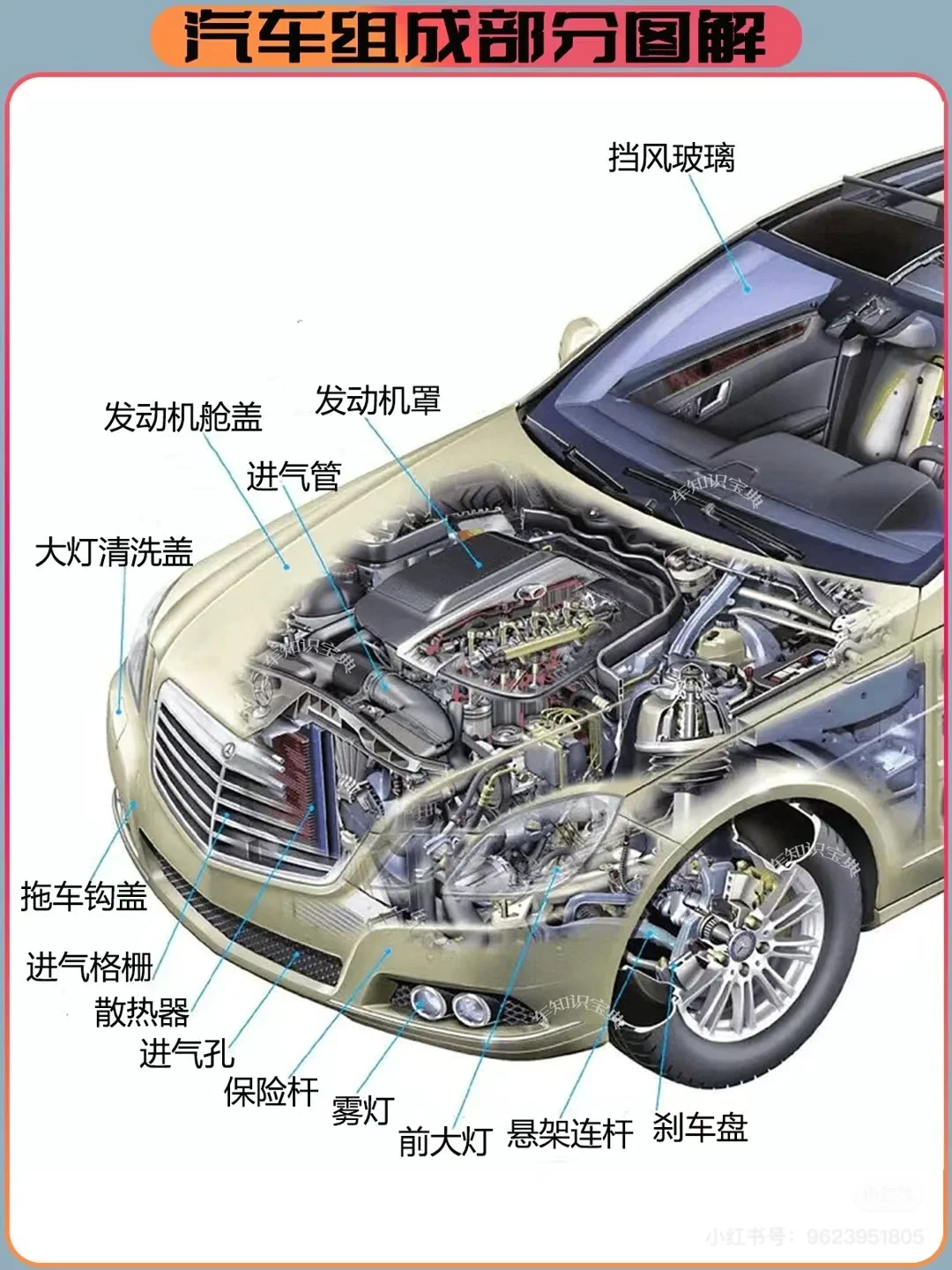 发动机 (Engine): 负责将燃料转化为动力,是汽车的“心脏”。
