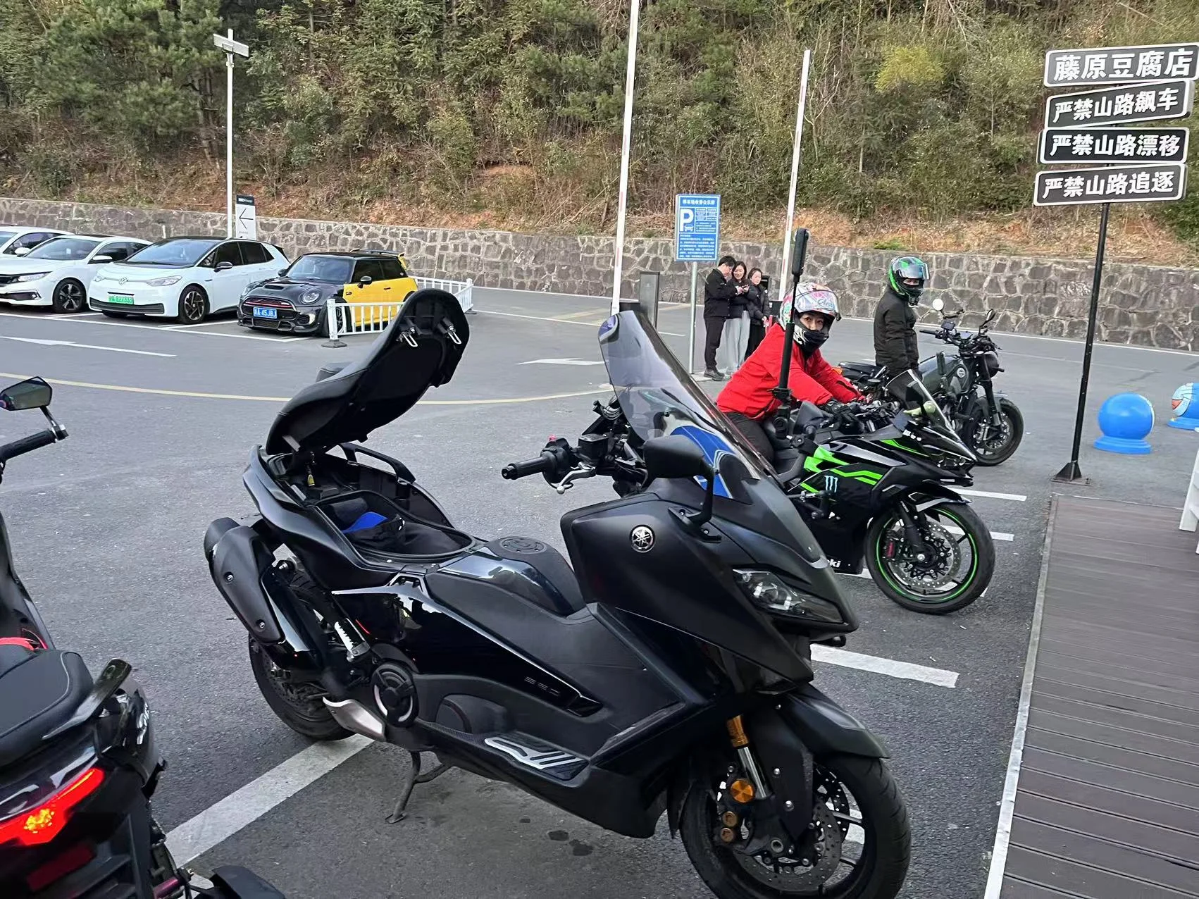 路上有很多飙车和骑摩托车、骑自行车的人,感觉很危险
