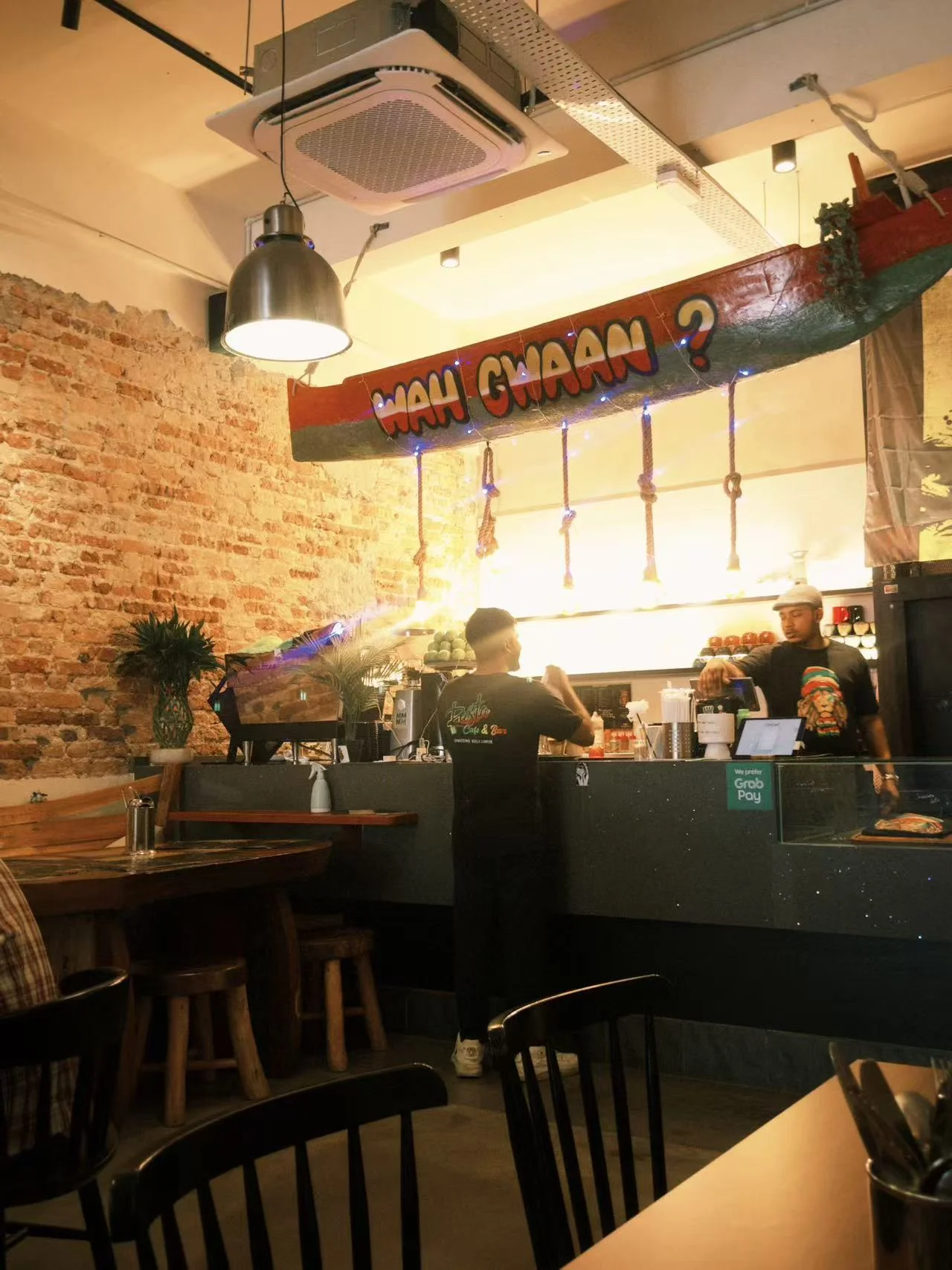 吉隆坡的中午还是非常热的 , 为了避暑我们去了这家咖啡店 .