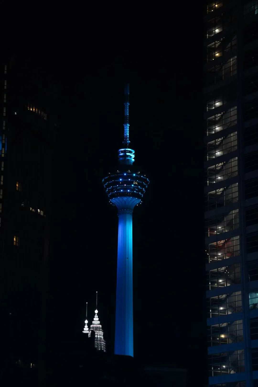在 river of life 的地方拍到的夜景 KL Tower 远处还可以看到一小角的双峰塔