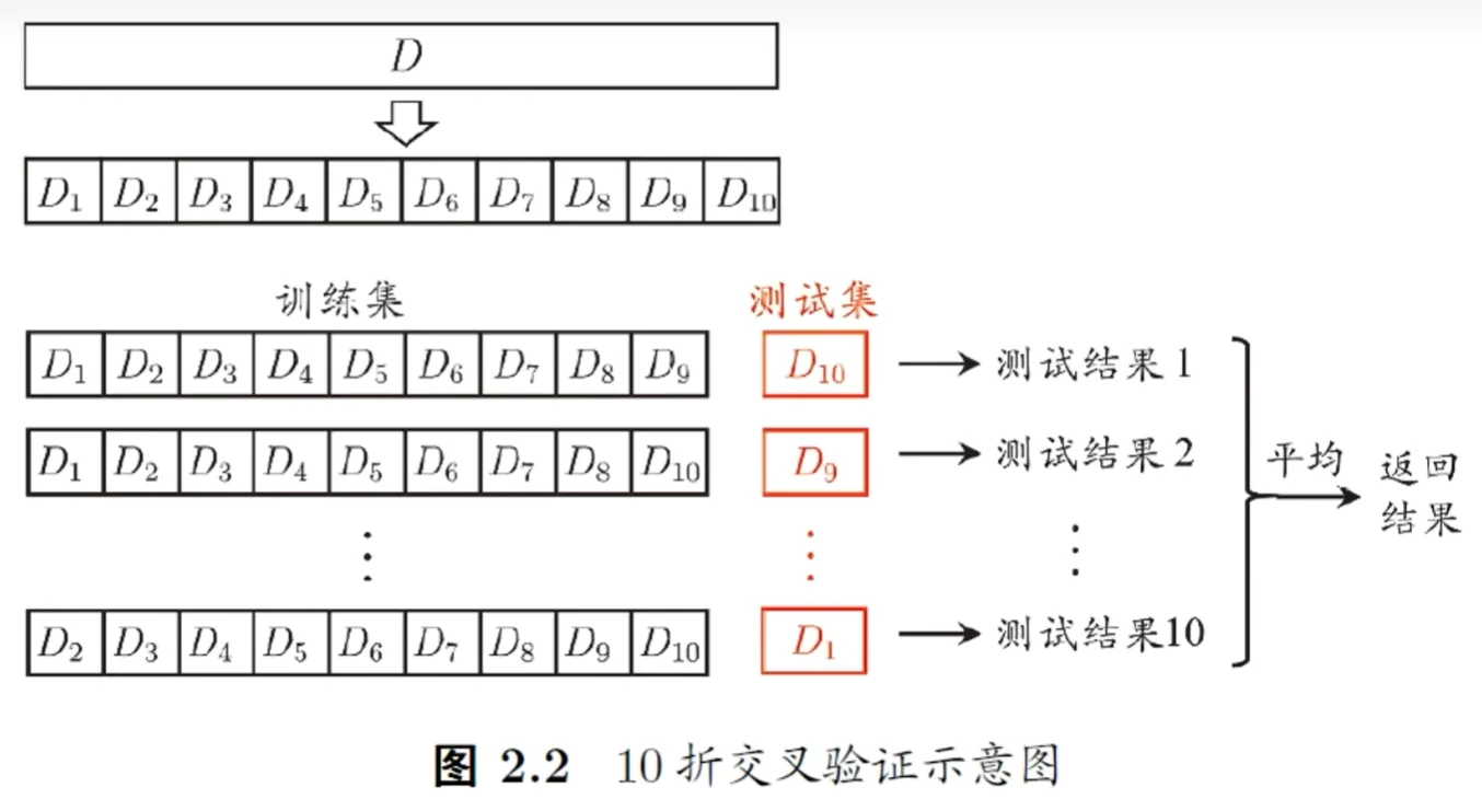 - 分层采样划分数据集:将数据集分层采样划分为 K 个大小相似的互斥子集。