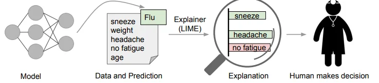 - 用户需要信任预测结果:举一个论文中提到的例子,一个医学模型判断病人患病,通过 LIME 算法同时给出病人的病史症状包括喷嚏、头痛等特征,医生利用自己的先验知识,就能更好地借助模型做出决定。