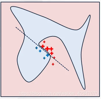 如图所示,红色和蓝色区域表示一个复杂的分类模型(黑盒