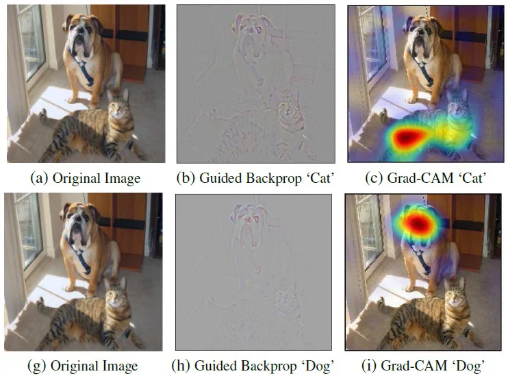 - Compare Grad-CAM to Guided BackProp for the classes ‘Cat’ and “Dog’ in the image