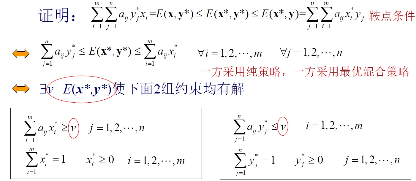 定理:一定存在混合策略意义下的矩阵博弈均衡解
