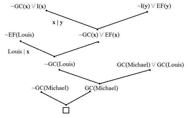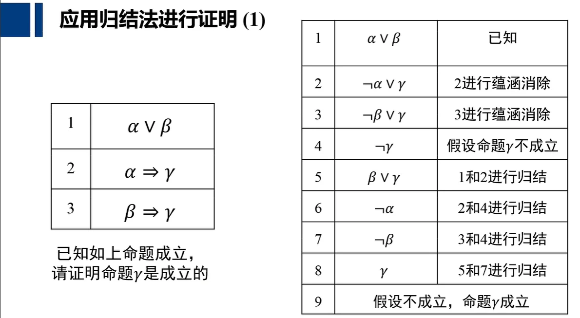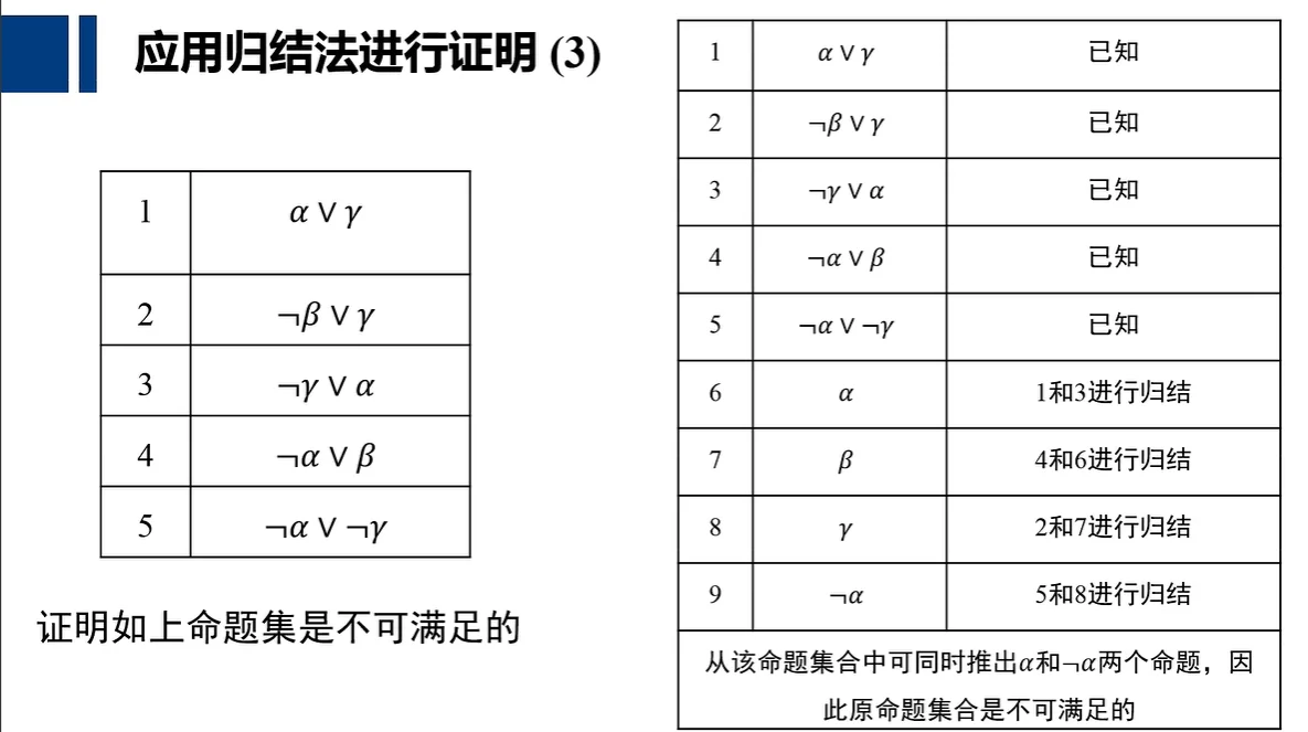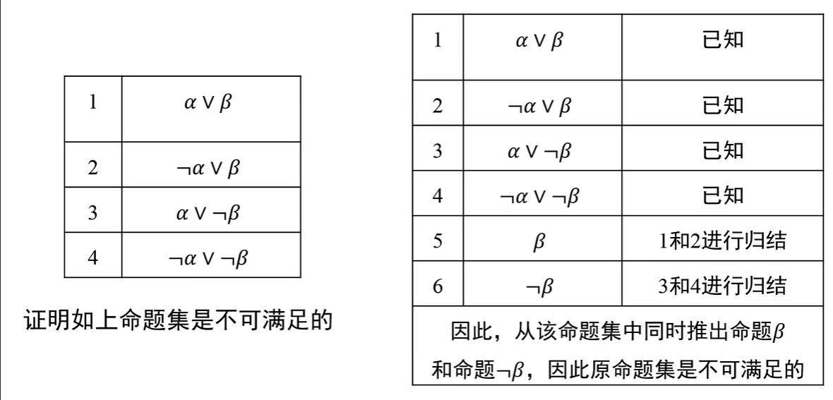 归结:\(\alpha \lor\beta, \neg \alpha\) 推出 \(\beta\)