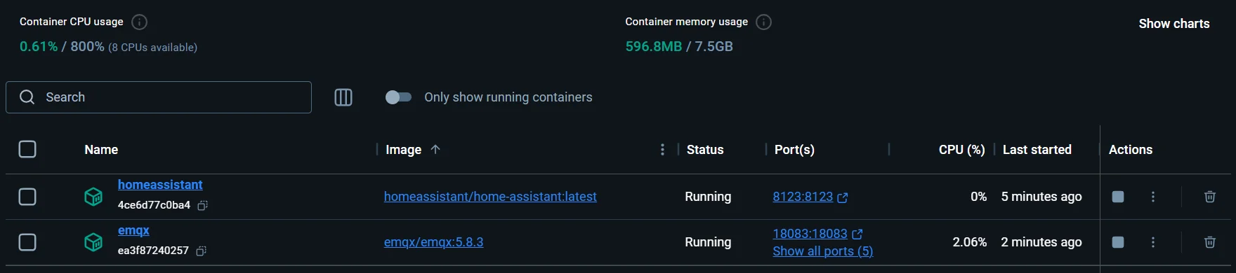 docker run -d --name emqx -p 1883:1883 -p 8083:8083 -p 8084:8084 -p 8883:8883 -p 18083:18083 emqx/emqx:5.8.3