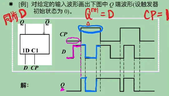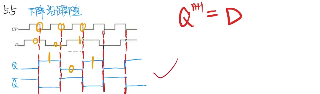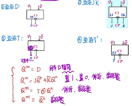 把 R,S 连接成 D $$ left{ begin{aligned} &Q^{n+1} = D\ & CP = 1 end{aligned} right. $$ 考点:脉冲锁存