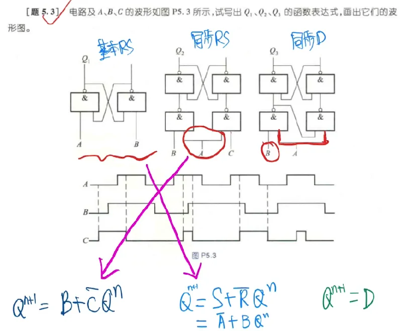 多了一个控制端,多了一个约束条件 $$ left{ begin{aligned} &Q^{n+1} = S+bar{R}cdot Q^n\ &RS = 0(约束条件) end{aligned} right. $$