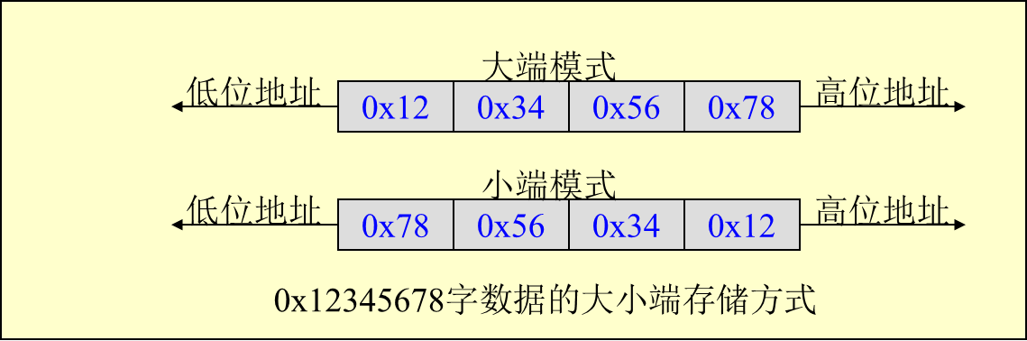 在小端格式中,高位数字存放在高位字节中。因此存储器系统字节 0 连接到数据线 7~0。