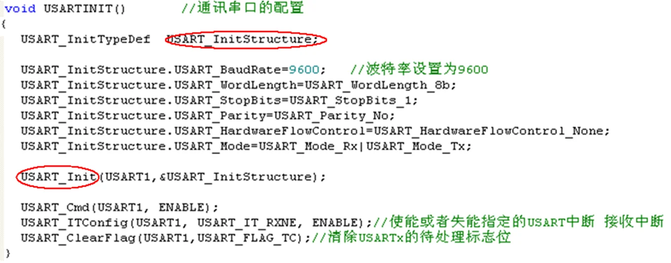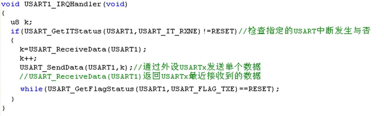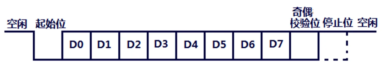 ②发送过程:UART 的发送寄存器接收到 CPU 写入的数据,立刻启动,按设定的参数逐位发送,发送完毕,置状发送态标志位,并向 CPU 申请中断,告诉 CPU 可以发送下一个字节。