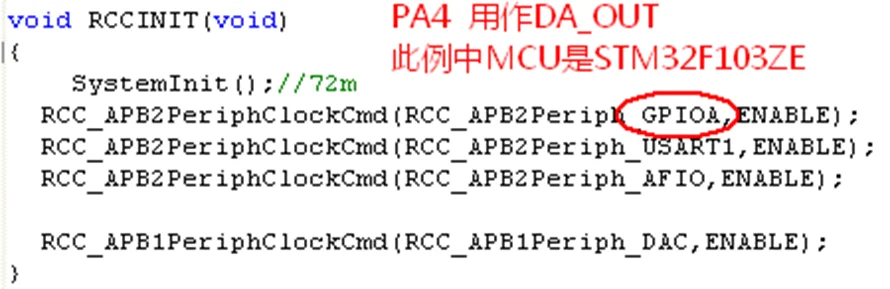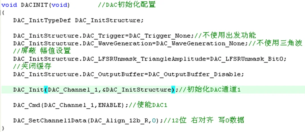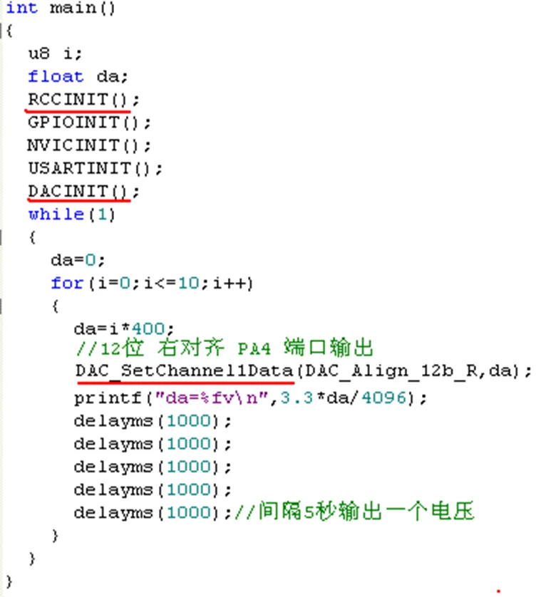- 输出电压计算:$ Vout = DA /4096times (VREF^+- VREF^-)$