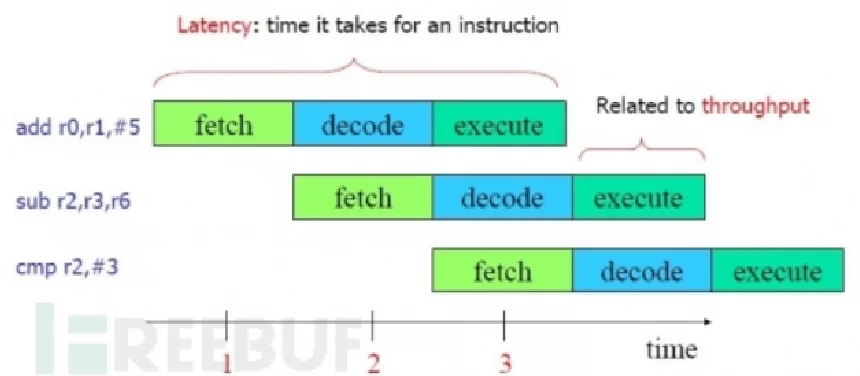 在执行一条指令的同时对下一条指令进行译码,并将第三条指令从存储器中取出。可以显著提高效率