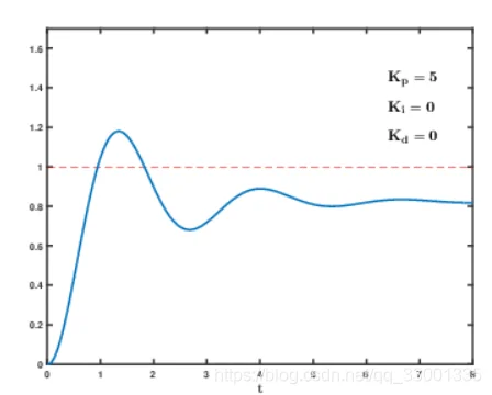 - 我们可以看到上面比例系数过大,导致系统震荡,超调量很大。接着再逐渐减小比例系数,直至系统振荡消失。