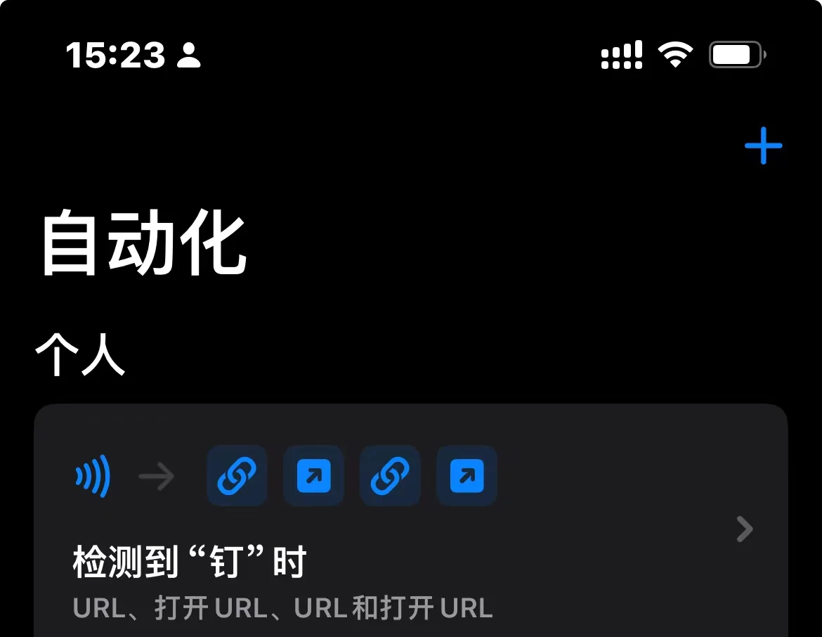NFC 作为触发器,然后执行打开浙大钉二维码的操作,快捷指令下载地址