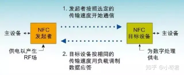 被动模式:NFC 终端模拟成卡,仅在其他设备的射频场中被动响应。