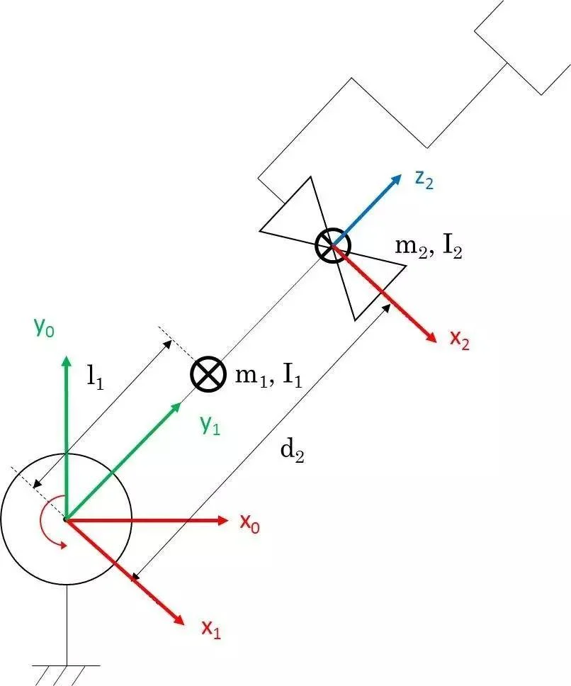 注意这里我们求的不是 end effector 的雅可比矩阵,而是每一根连杆的质心的运动相对于关节运动的雅可比矩阵(在求解时可以把质心当作 end effector 来理解