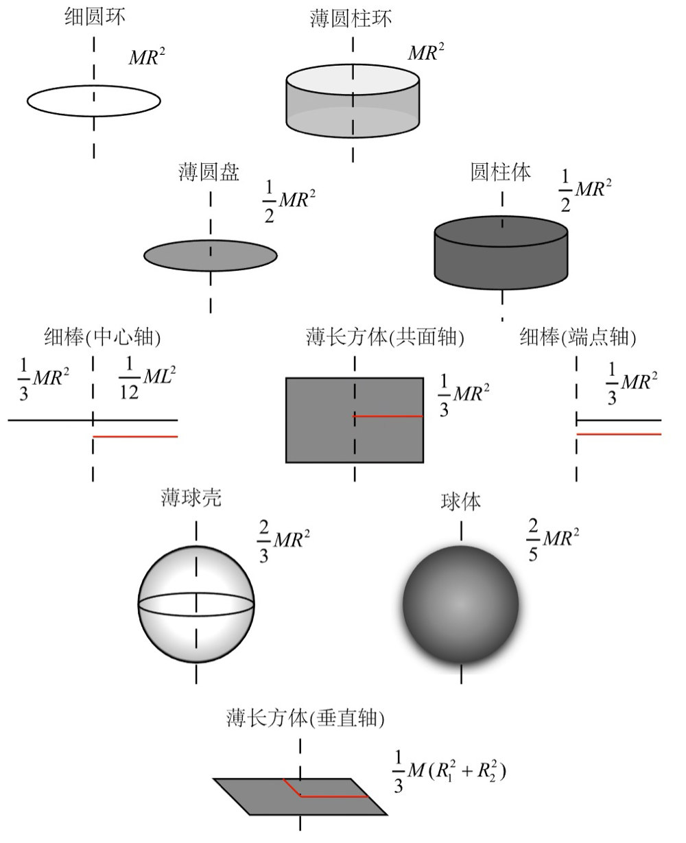 - 转动惯量是绕着某个轴的,而惯性张量是绕着某个点的。