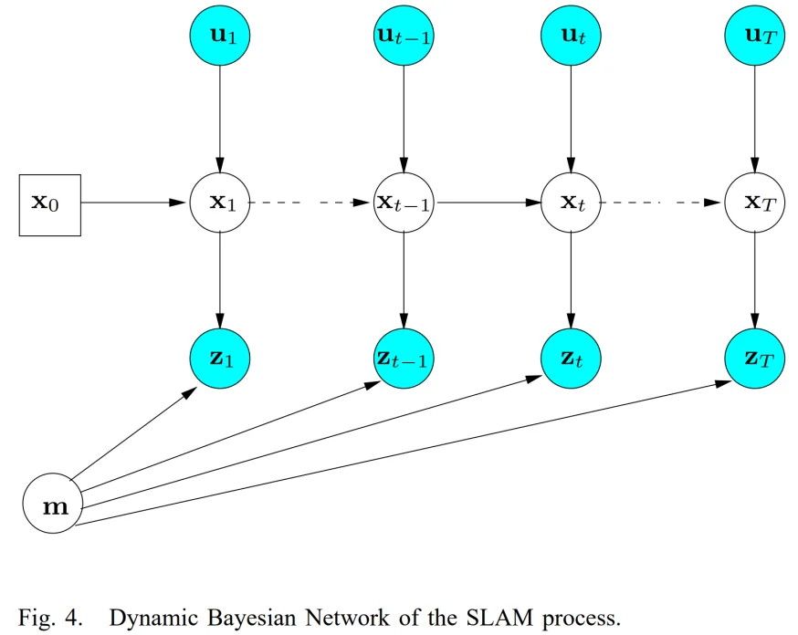 ) ,\(m\) 为观测到的路标,\(z_t\) 为外部传感器输入,\(u_t\) 为内部传感器输入。
