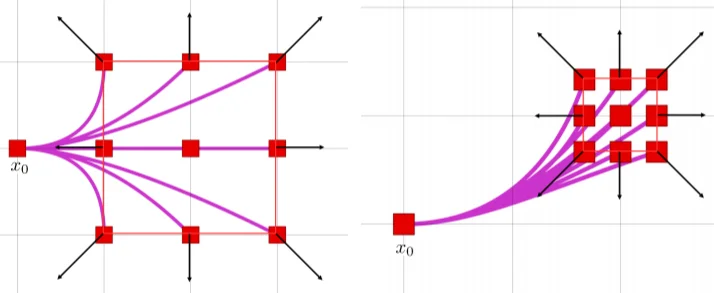 - 控制空间采样:选择一个输入 \(u\),固定一个持续时间 \(T\),前向模拟系统(数值积分