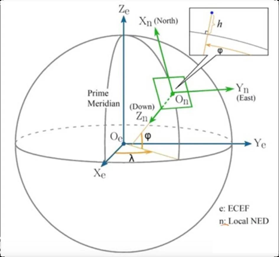 NED 坐标系是在导航计算时使用的坐标系,向量分别指向北,东,地,因此 NED 坐标系也经常称为北东地坐标系