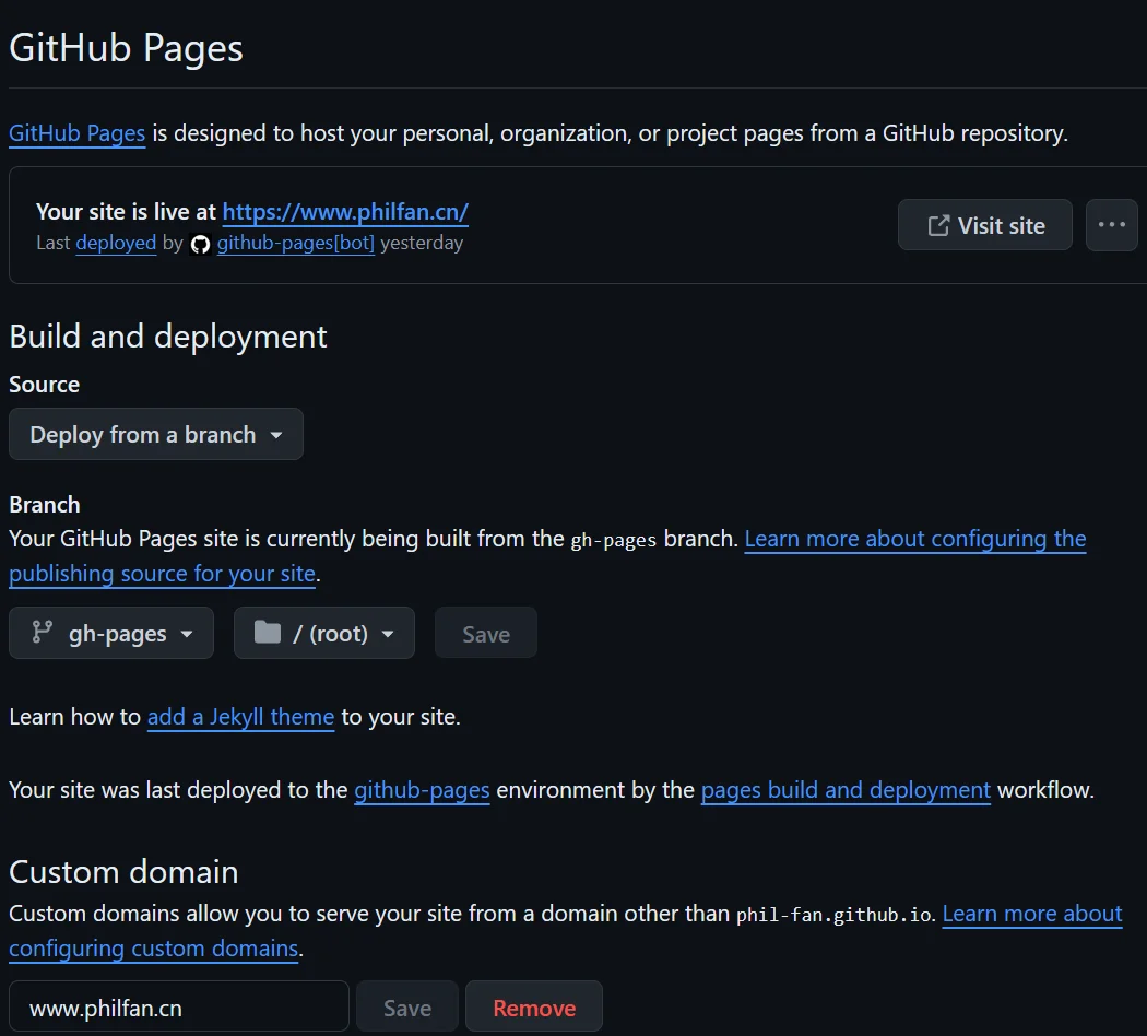 run: echo "www.philfan.cn" > docs/CNAME # Adjust the path if your configuration is different