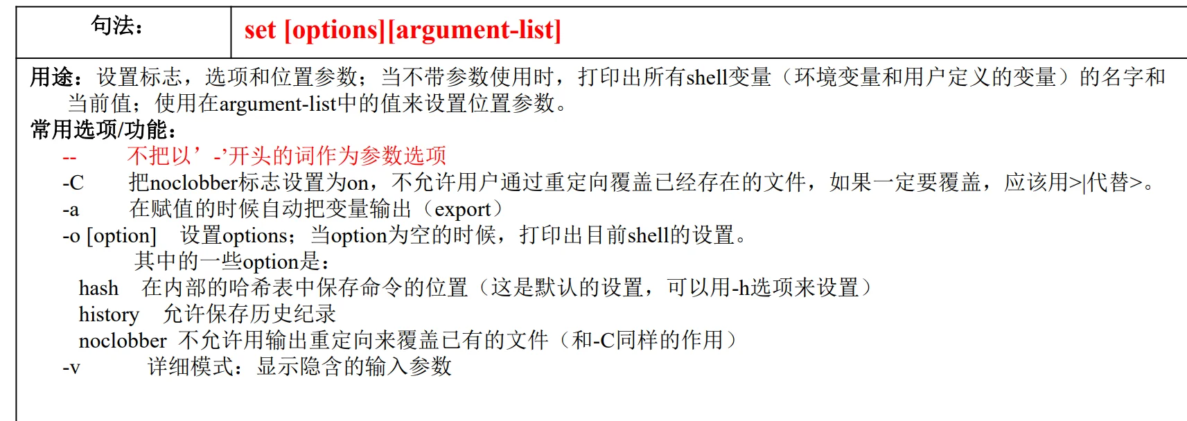 - $- 是 set 命令的 –h 和 –B 的参数 , 表示使用内置的 set 命令扩展解释之后的参数行 , 具体分别表示为, 记住工作路径, 和允许使用 ! 历史扩展, 详细请参阅 set 命令.
