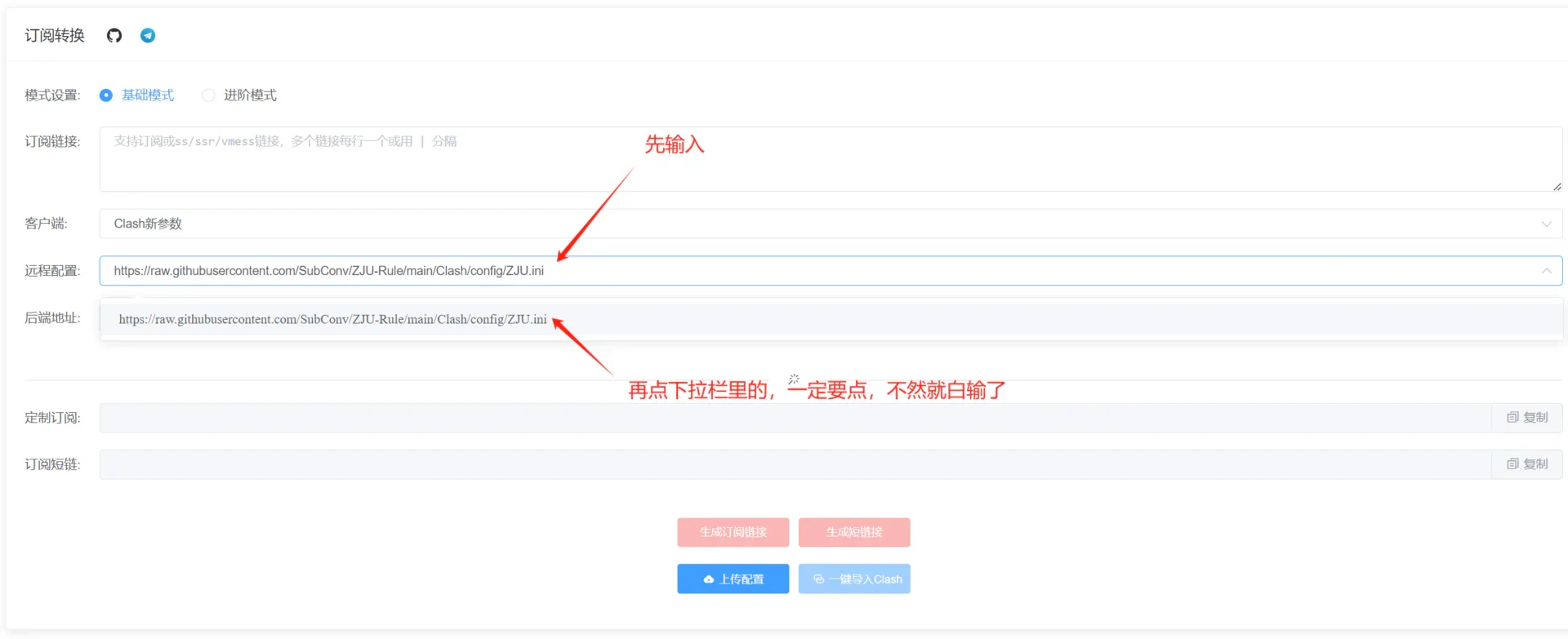 https://raw.githubusercontent.com/SubConv/ZJU-Rule/main/Clash/config/ZJU.ini,并点击下拉栏中的地址