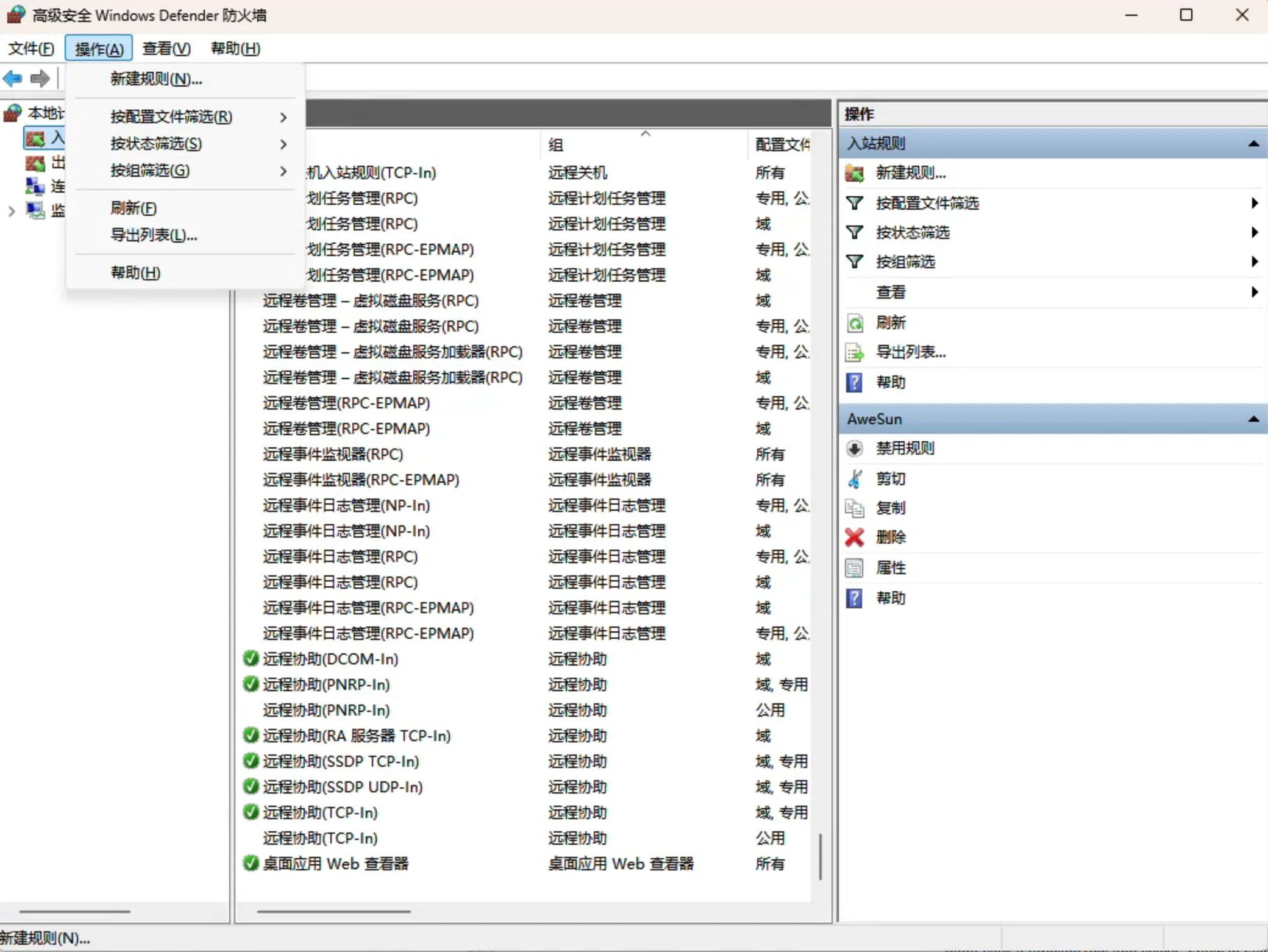 也可以使用 defender 防火墙添加规则