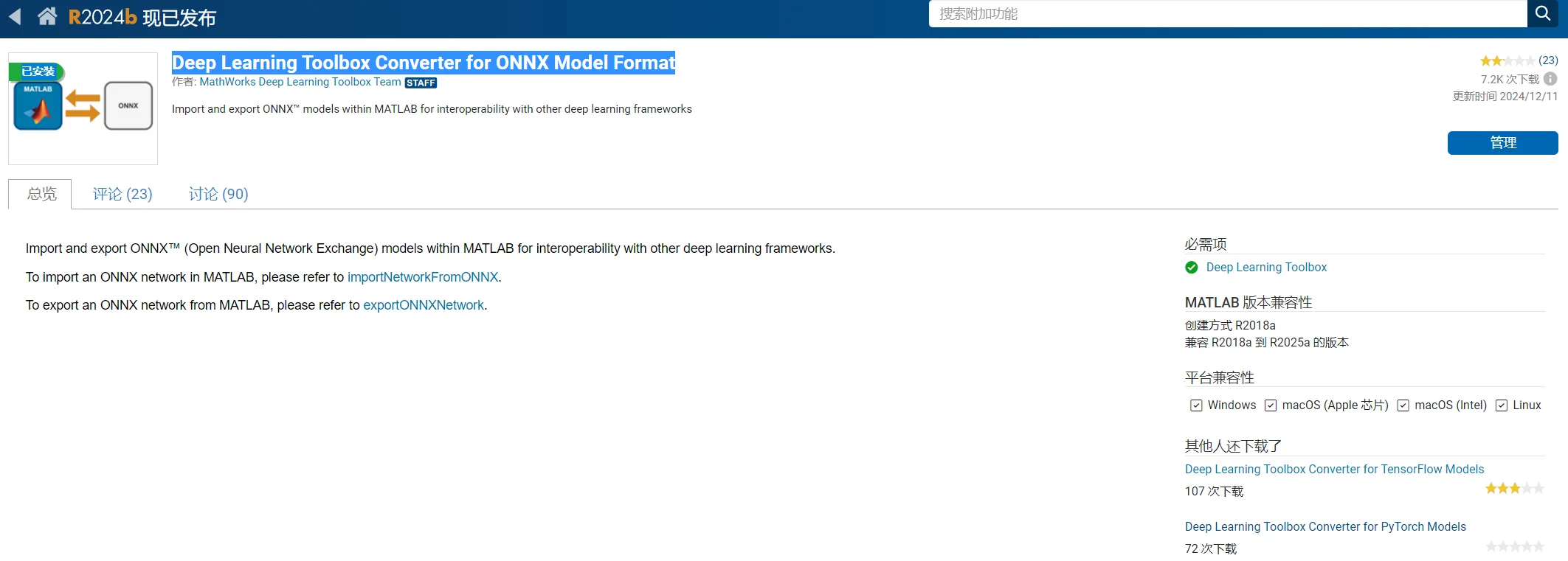 首先下载 Deep Learning Toolbox Converter for ONNX Model Format