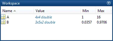 [minA,maxA] = bounds(A) % 如果存在多个输出参数,请将其括在方括号中