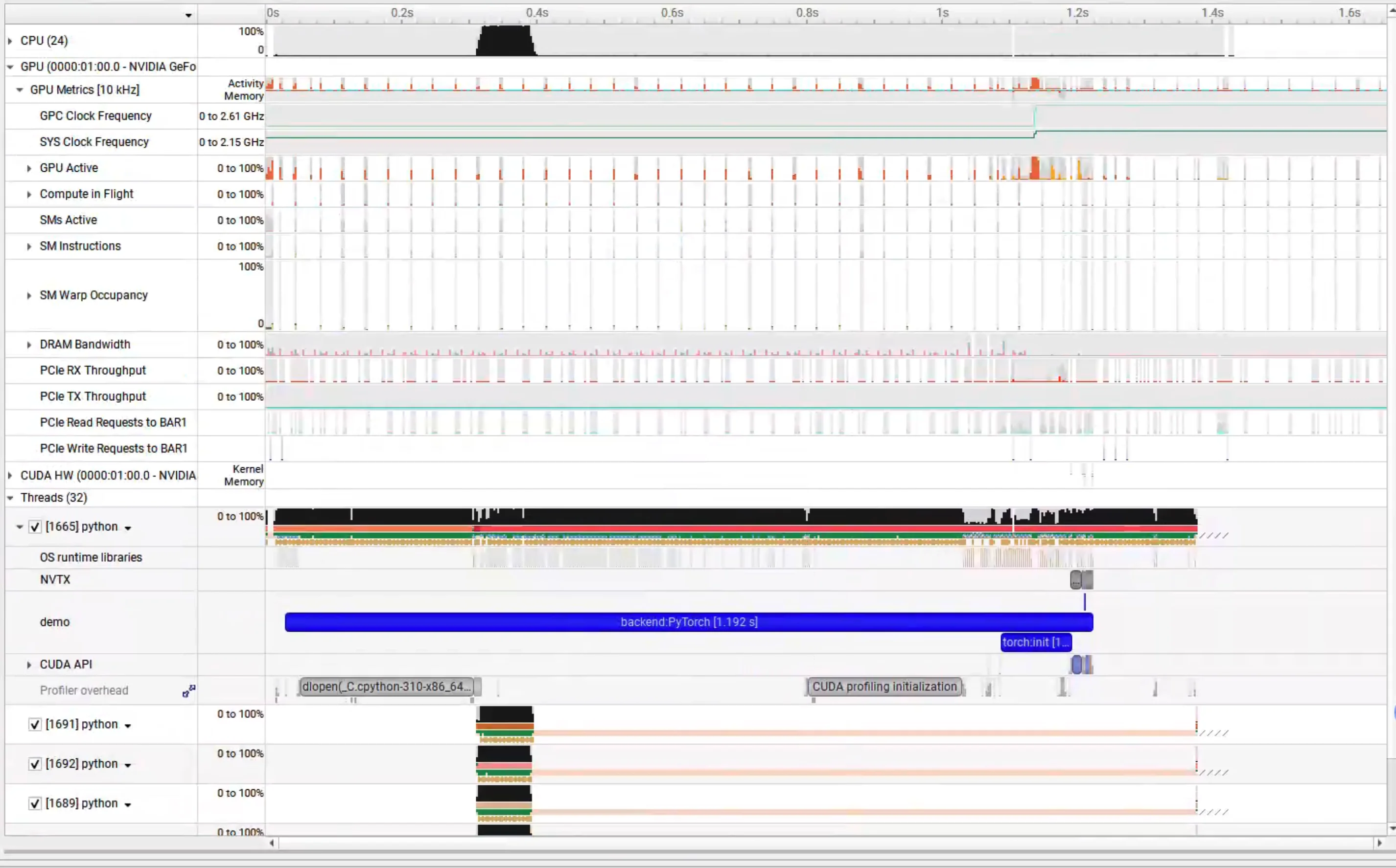 nsys profile –trace=cuda,cudnn,cublas,osrt,nvtx python demo.py