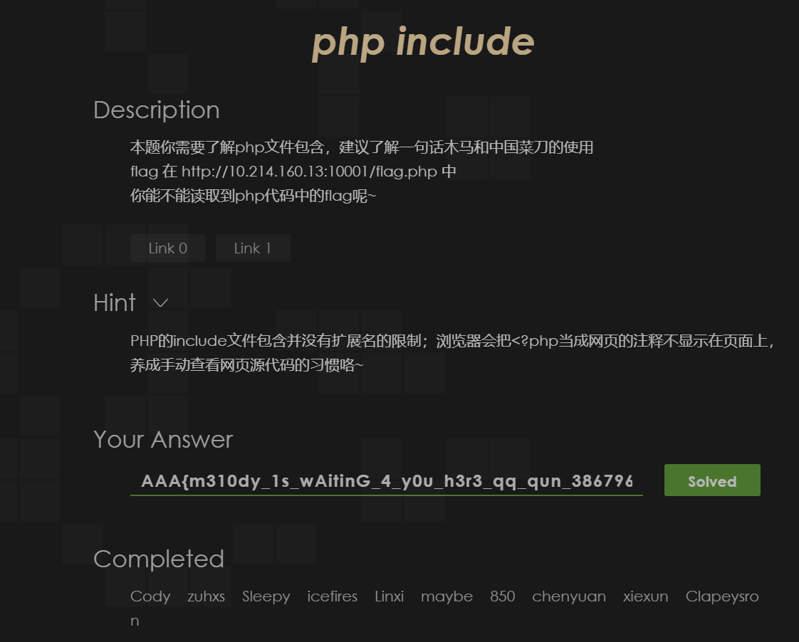 但是这个题和 php include 不同之处是文件不是直接导入进来的 , 所以需要找到一个包含的地方 .